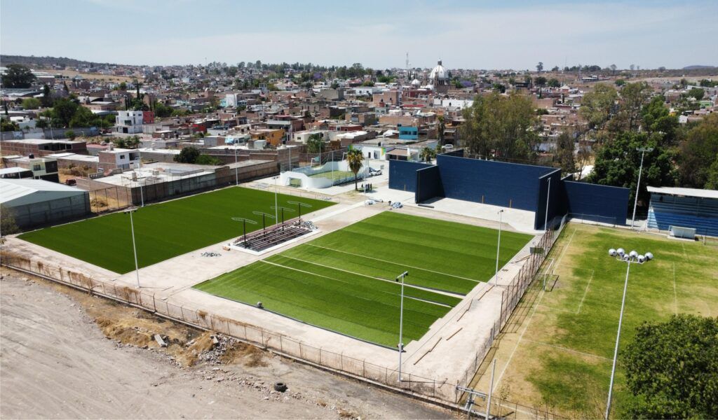 La presidenta municipal, Gaby Hurtado, reafirma su compromiso con el deporte y la juventud con la construcción de dos nuevas canchas de fútbol 7 en la Unidad Deportiva Domingo Alba.